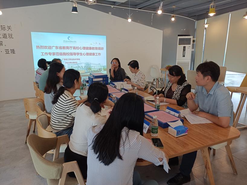 202368日下午230,广东省高校学生心理健康教育专家指导委员会评估专家组一行五人到我校开展调研评估,本次专家组由广东外语外贸大学许国彬教授任组长、广东白云学院执行校长程玮教授、广州铁路职业技术学院心理中心主任叶琳琳副教授、广东外语外贸大学心理中心副主任阎茹和广东白云学院学生处处长段立副教授组成。广东轻工职业技术学院分管学生工作校领导梁艳珍副书记、学工、教务、团委、人力资源、保卫处等各部门负责人及心理中心、各学院副书记(二级心理辅导站站长)、辅导员代表等三十余人参会。