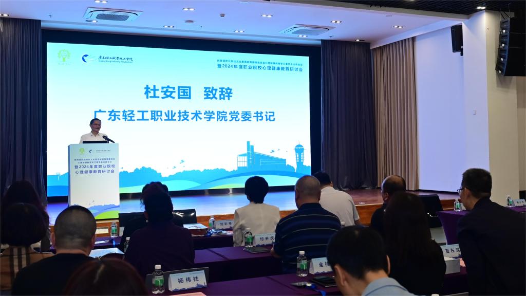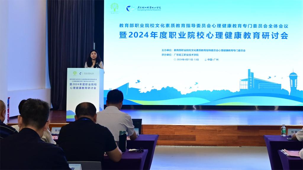 2024411日至413日期间,由教育部职业院校文化素质指导委员会心理健康教育专门委员会主办、广东轻工职业技术学院承办的教育部职业院校文化素质教育指导委员会心理健康教育专门委员会全体会议暨2024年度职业院校心理健康教育研讨会在广东轻工职业技术学院举行。来自心理健康教育专门委员会的委员单位成员,全国56所职业院校的学生工作者和心康教师,华南师范大学、广州大学、广州中医药大学、南方医科大学、广东外语外贸大学、中科院心理所应急心理行为研究中心等从事心理健康教育与研究的专家学者,来自河北科技工程职业技术大学等12所学校的校领导,教育部职业院校文化素质指导委员会秘书长、深圳职业技术大学党委委员文首文,广东省思想政治工作与宣传处副处长关春杰,广东轻工职业技术学院校领导杜安国、梁艳珍及相关部门负责人、心理中心全体教师、二级学院学工队伍等130余人出席了活动。