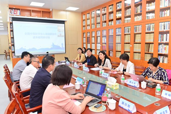 范方、聂衍刚、马利军、付桂芳教授、心理健康教育专门委员会委员单位、副委员单位成员在会议期间进行了全国中高职学生心理健康教育读本编写研讨。