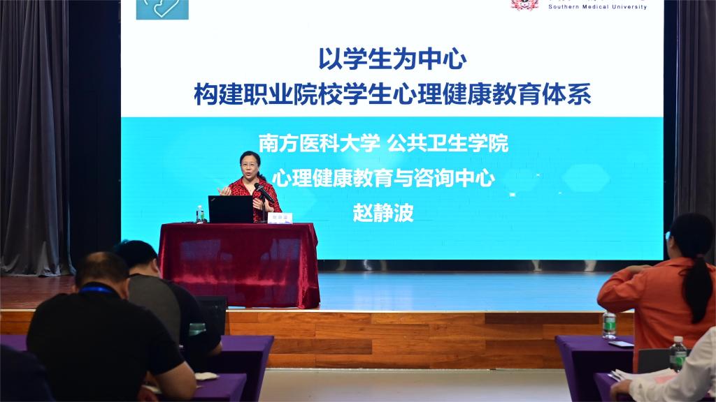 研讨会上,南方医科大学公共卫生学院心理学教授赵静波作了题为《以学生为中心构建职业院校心理健康教育体系》的专题报告。该讲座以职业院校心理健康教育工作相关政策文件为主线,赵教授深入浅出地解析了相关文件中心理工作的重点,并与实际案例相结合,指出了在心理工作中要加强专业能力,重视“以学生为中心”,从而构建特色心理工作体系,提升心理工作规范性。