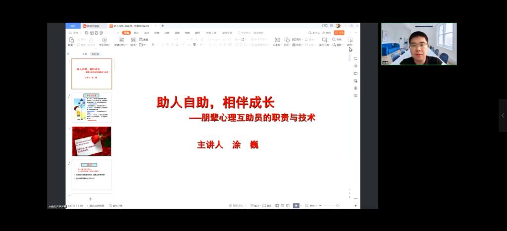 本次培训的主题是《朋辈心理互助员工作理论与实操》,在培训中涂主任为各位心委讲解了朋辈心理互助员——心理委员的含义,并指出心理委员学生干部团队的组建意义,为心委们阐明了自己的工作意义和目的。