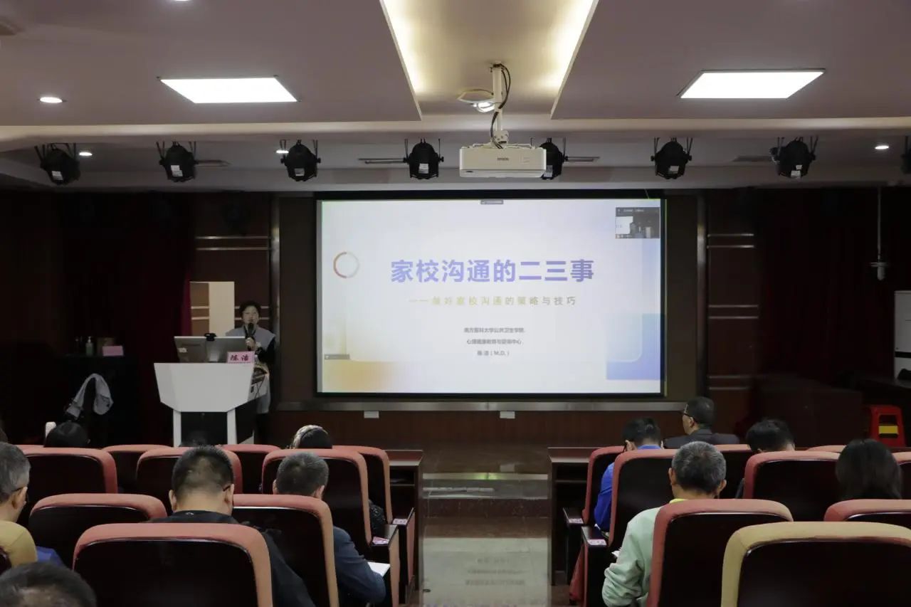 2024年12月11日晚,心理中心在琶洲校区学术报告厅举办了女生青春期心理卫生教育讲座。本次讲座特邀南方医科大学陈洁副教授作为主讲嘉宾,心理中心林彩云老师主持,各校区女生代表通过线上线下形式共同参与了此次讲座。