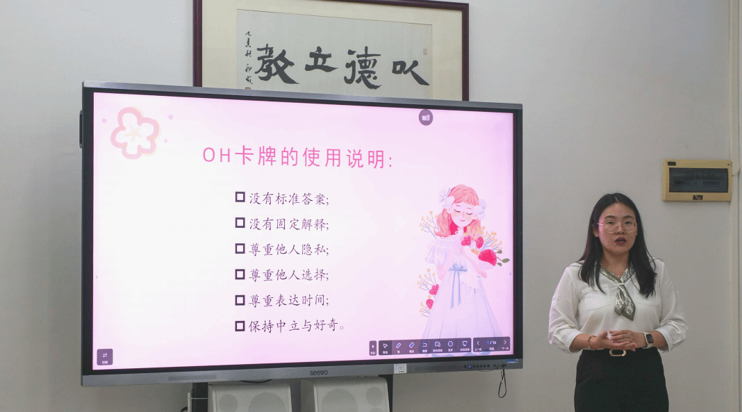活动伊始,利老师为大家介绍OH卡,激发参与者的兴趣。接着具体解释OH卡牌的使用说明,以及强调保密原则,引导参与者共同营造支持、接纳、信任、安全的团体氛围。