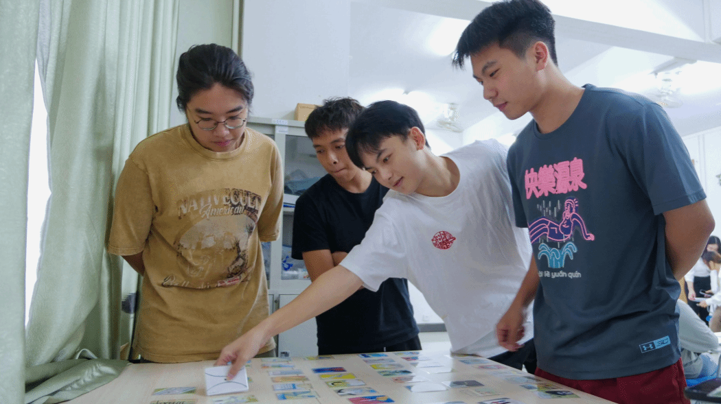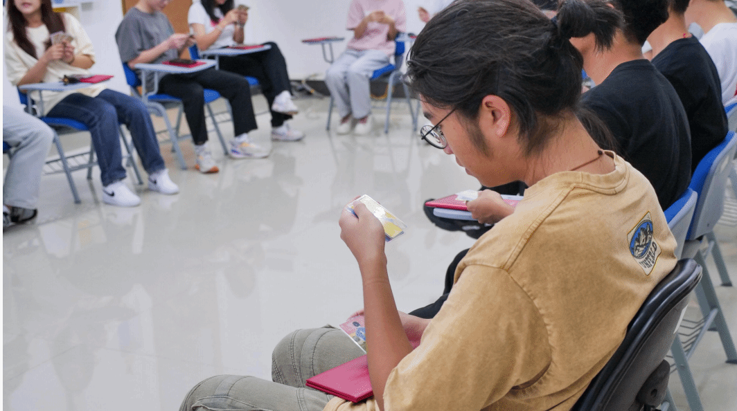 “OH卡故事接龙”环节,每个成员抽取三张图卡,大家纷纷认真读卡,运用自己的想象力,创造以“我”为叙述视角的独特故事。