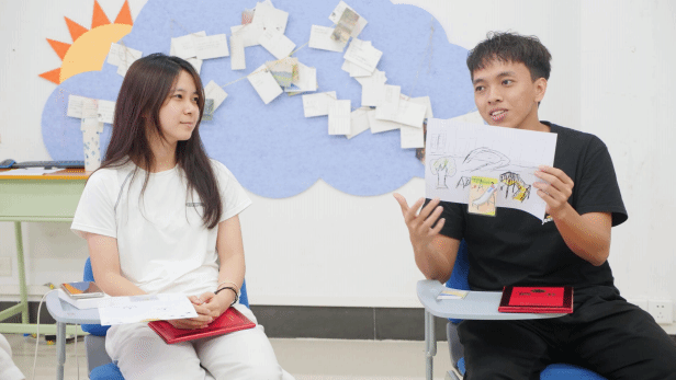 在“我的OH卡拓展画”环节,参与者挑选图卡后画一幅可以与该图卡连接的画,通过拓展画表达图卡与内心的共鸣。接着每位同学与成员们分享,通过解读画作,探索自己的心灵,从而进一步加深对自己的认识。