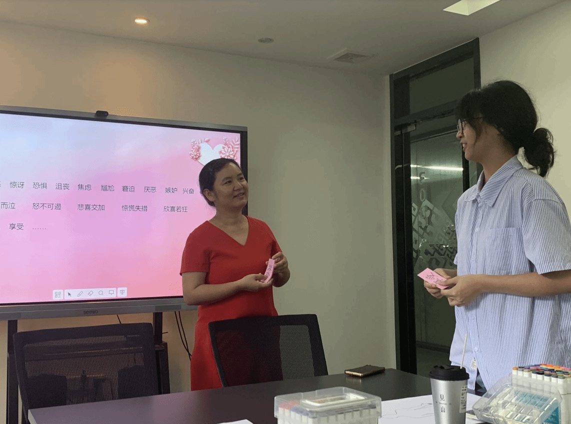 带领者通过讲解和案例分享等方式,引导参与者深入了解情绪的基本概念和分类。接着通过情绪词汇卡片游戏,增强成员们对情绪词汇的熟悉度与运用能力。