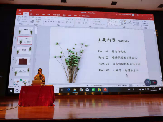 2019年12月2日、12月4日晚在图书馆报告厅,应食品与生物技术学院邀请,大学生心理健康教育与咨询中心吴俊平和凌瑛老师为食品学院1000余名学生带来了“大学生就业心理安全与情绪管理”、“情绪调控管理”系列讲座。
