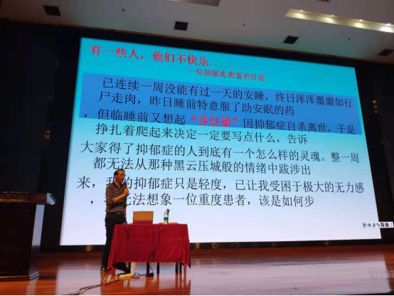 讲座下半场面向大二、大三学生,内容针对抑郁症的识别与应对,其中重点讲到的大学生抑郁症问题,让同学们了解到抑郁是什么,症状有哪些,也让同学们感受到抑郁症对患者影响的重大。