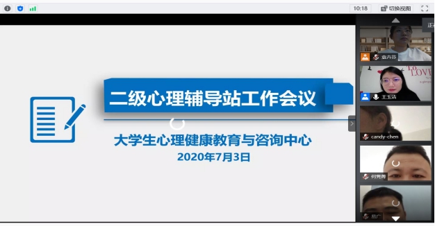 为进一步贯彻落实习近平总书记在统筹推进新冠肺炎疫情防控和经济社会发展工作部署会议上“加强心理疏导和心理干预”的指示精神,落实粤教防组[2020]78号《关于印发<广东省高校复学前后学生心理危机预防与干预工作指引>的通知》的工作要求,更好地开展梳理疫情防控阶段我校心理健康教育工作,心理中心于7月3日下午,召开了二级心理辅导站线上工作例会,会议由中心主任王玉洁主持,各二级学院副书记、心理工作辅导员、心理中心全体教师参与了本次会议。