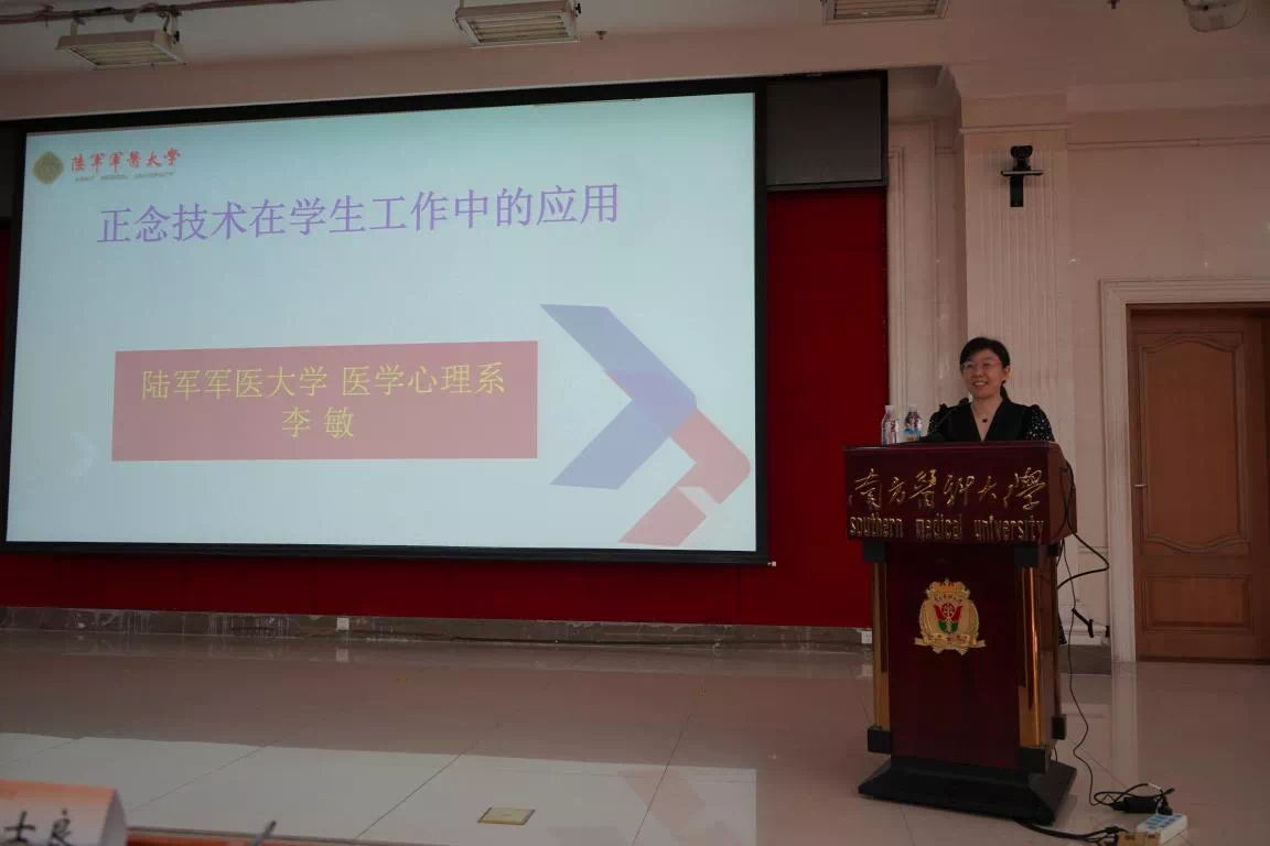 2021年5月24日下午,广东省高校大学生心理健康教育与咨询区域中心(第三片区)正念培训工作坊,我校心理中心教师王玉洁、高涛、凌瑛、袁卉芬至南方医科大学参与陆军军医大学军事心理学教研室主任李敏教授《正念在高校学生工作中的应用》讲座。李敏教授用“拍拍操”开场,让大家的身体的活动起来,也让现场的氛围顿时热烈起来。在培训中,李敏教授向大家介绍了正念练习对身心健康、人际关系的多方面的益处,带领大家体验了三分钟呼吸空间、身体扫描等各种形式的正念练习,用精辟的语言帮助大家理解正念“此时此刻的念头、感受当下”的内涵:“正”就是“止心一处,专注于一点”,“念”就是“心在今下,有意识地觉察、关注当下、不做评判”。陆教授的讲座实践与理论并举,在高校学生心理工作中具有很高的实用价值,中心教师收益颇丰。