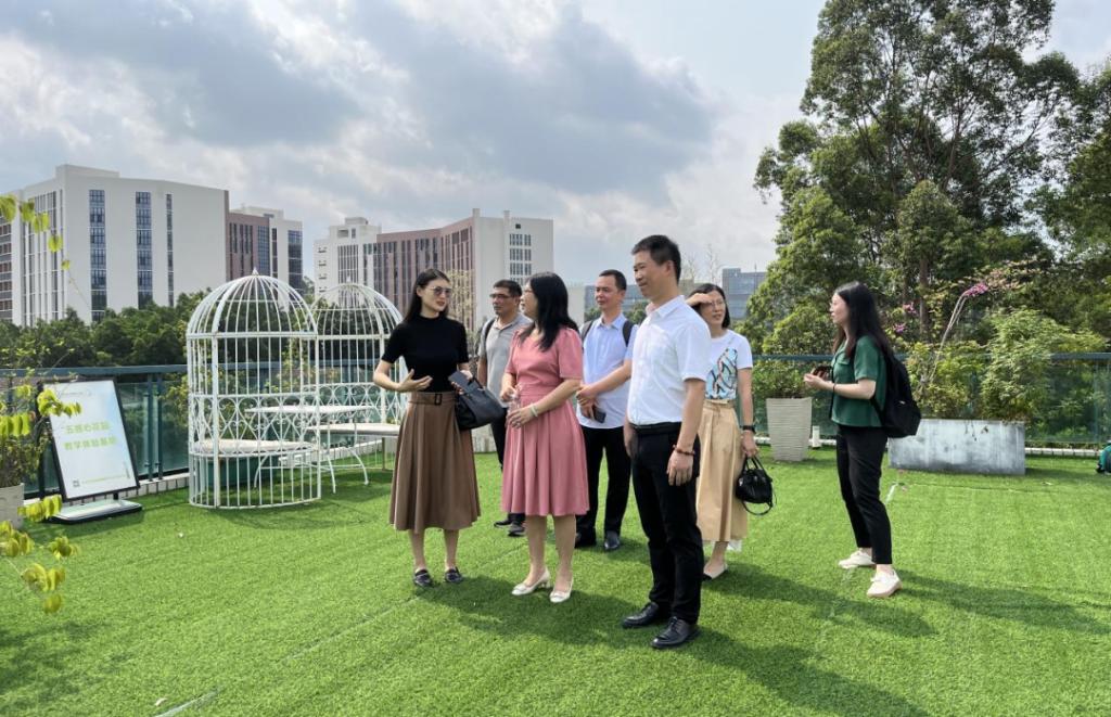 活动分为座谈会和实地走访两个部分。座谈会上,双方就心理大数据平台的建设与应用、一站式学生服务社区的构建与实践等议题进行了深入探讨。实地走访环节,代表团参观了我校心理中心各功能室、五感心花园及一站式学生社区党建思政教育基地。