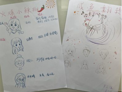 课堂开始,王老师邀请各个小组分享讨论各组员的特点,在小组内“求同存异”,并探讨组员的共同特点,设想属于自己小组的组名与组徽。各个组员都能在小组中积极分享,并创造出彰显其小组共性的组名与组徽。