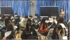 同学们齐声歌唱,感受歌曲中所要表达的情绪,并以小组为单位和组员们分享自己体验到该情绪的感受并合理表达,从而减少压力,改善消极情绪。